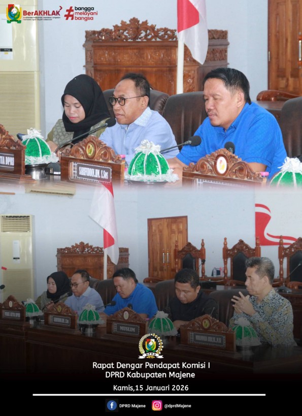 MAJENE, KARABAO.ID – Menindaklanjuti surat dari Forum Badan Permusyawaratan Desa (BPD) Kabupaten Majene terkait permintaan konsultasi, Komisi I DPRD Kabupaten Majene yang membidangi pemerintahan menggelar Rapat Dengar Pendapat (RDP), Kamis (15/1/2026).